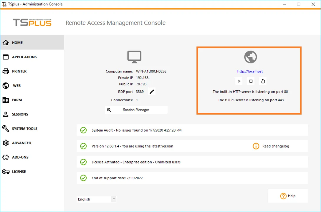 This section will help you configure a basic TSplus Remote Access environment.